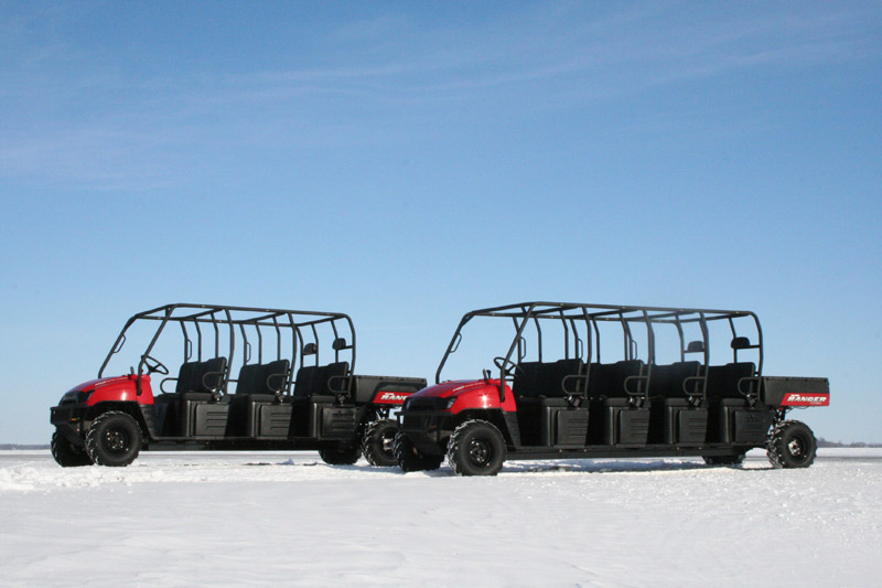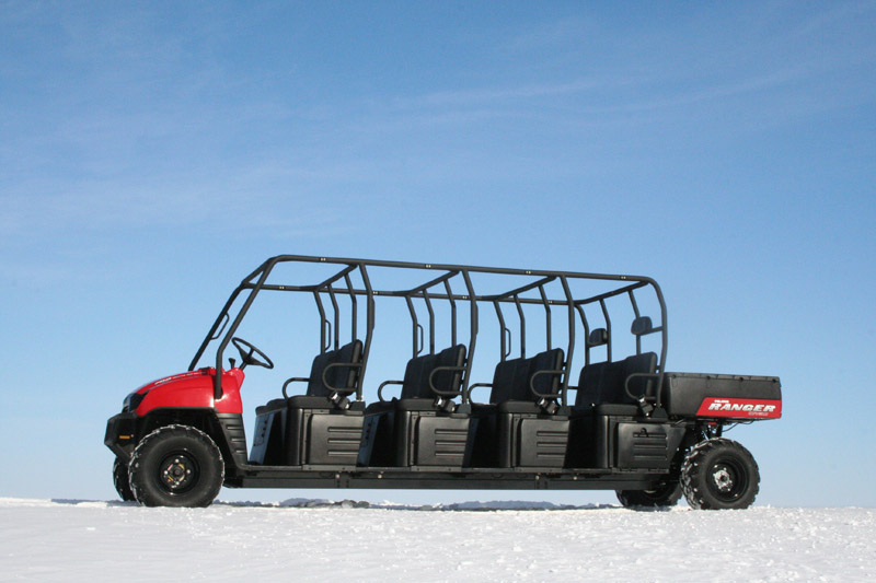The RANGER you need to haul a really big crew – up to 12 people! Strong sub-frame with heavy duty suspension and drivetrain. Excellent handling on and off the trail. Surprisingly good turning and maneuverability.
