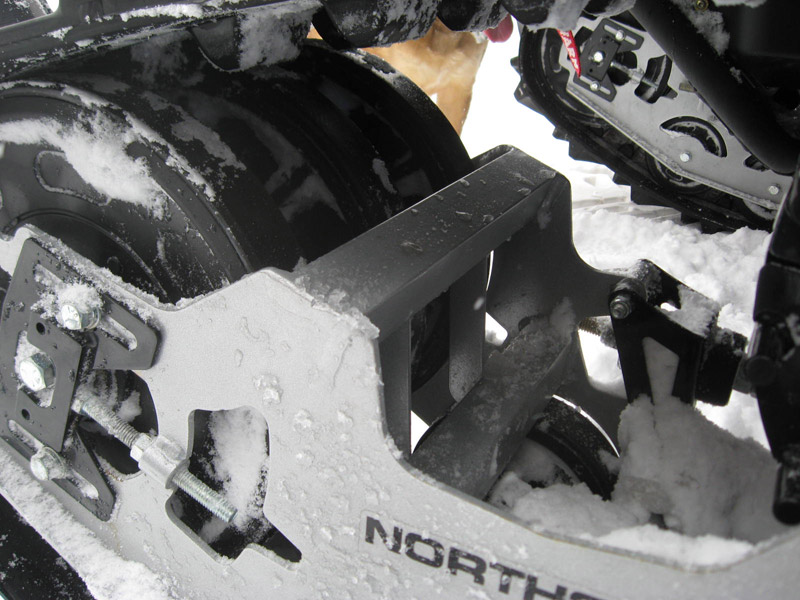 - Extra wide large rubber wheels - low rolling resistance, excellent track support, rubber running surface for comfort and durability. Wheel scrapers for mud and ice build-up. Grease fittings on all wheels and pivots. Double lip sealed bearings with debris shield.